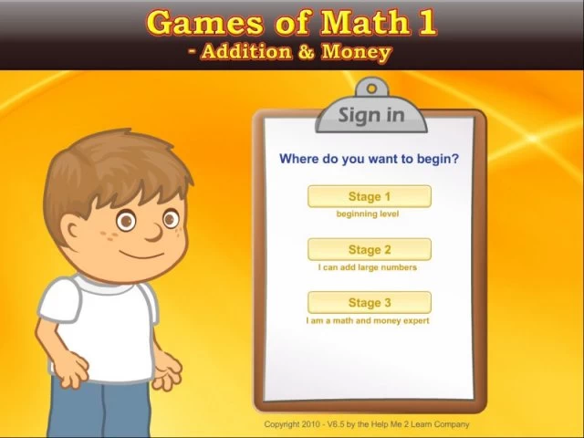 Games of Math 2 is a totally unique and exciting way to learn addition and money! Students begin at the appropriate level: beginning, intermediate or advanced. There is a practice section to work on specific number sense problems, addition and money skills. Students then select their character and build a custom pet which will be used throughout the games. There are 6 challenging games; each game features 5 levels of play. The objective is to complete each level and earn the gold star certificate while building addition and money skills and fluency.