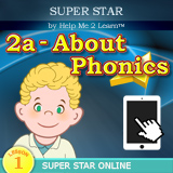 Phonics 2a begins with a review of basic phonics concepts and sounds. The "Learn the Words" section helps the student see a picture of the word, see and hear the word, and then see and hear how the word is formed phonetically. Exciting and challenging spelling and review games give students a jump-start on reading and spelling.- The Super Star Motivational and Data Tracking system, encourages students to earn silver and gold stars by completing each song, activity, or game